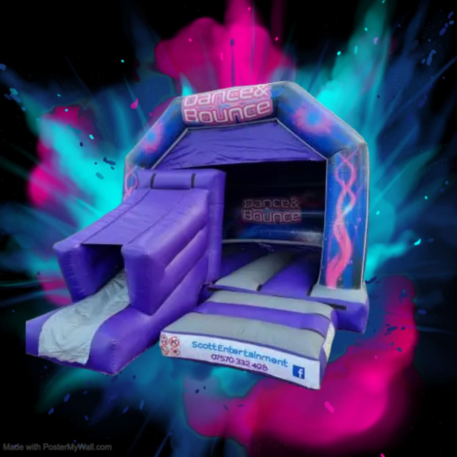Bring the party to your backyard with the Disco Combo (12ft x 15ft). This eye-catching bounce house combines a roomy bouncing area with a built-in front slide, disco lights, and a Bluetooth speaker. It’s perfect for birthdays, school events, and community gatherings. Colorful blue and purple panels create a lively vibe. Raincover included for light weather protection. 🌈🔊