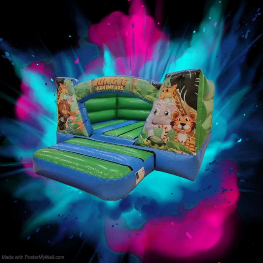 Bring wild excitement to any event with the Jungle Low hight castle 12ft x 14 ft. This compact bouncy castle blends bold jungle graphics with a low-entry design. It’s ideal for younger children, small backyards, and venues with low ceilings. Safe. Bright. Durable. 🐒🌿