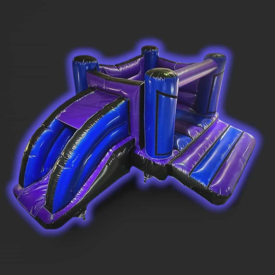 The Purple & Blue Castle with low slide (14ft by 18ft) delivers classic bounce-house fun with a gentle slide. Bright purple and blue colors attract kids. Durable vinyl and reinforced stitching ensure long-lasting use. Perfect for parties, school events, and backyard playdates.