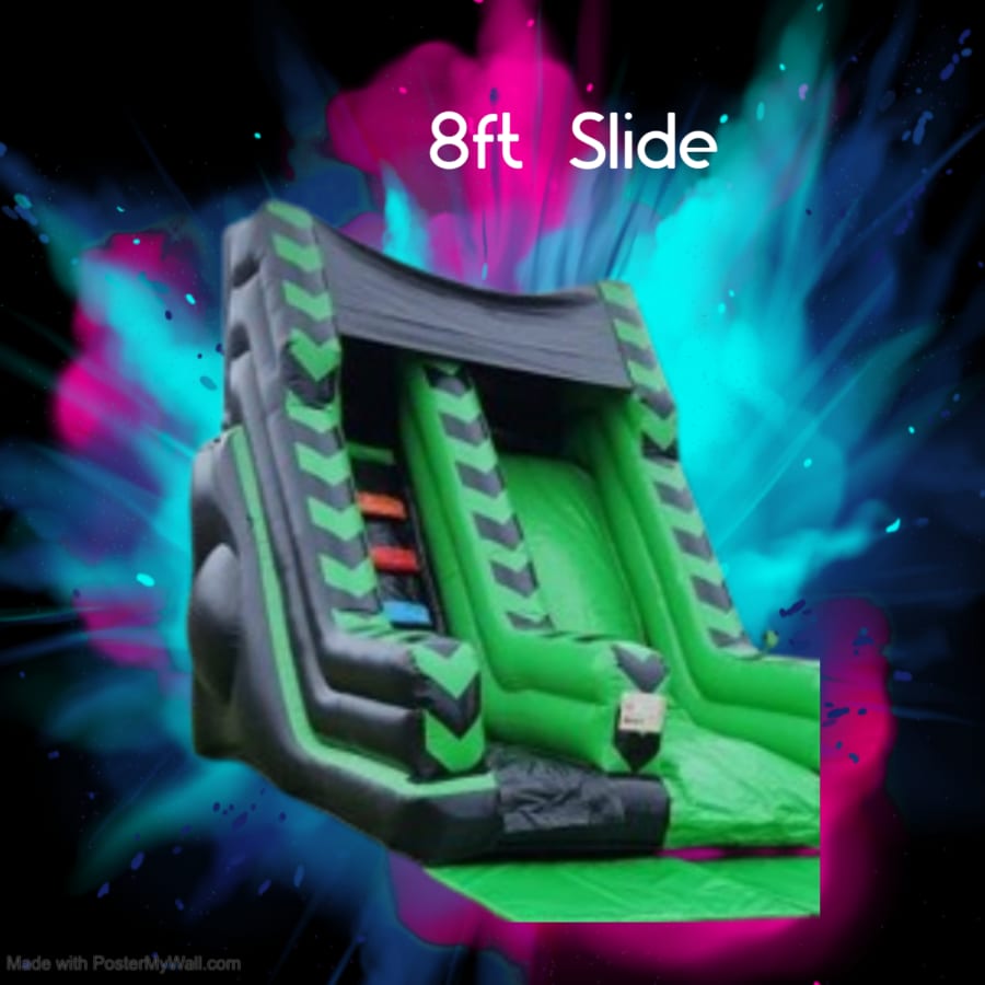 The 10ft Platform Slide - Black & green delivers fast, smooth rides with eye-catching style. Perfect for backyard parties, community events, and rental fleets. This slide pairs a sturdy platform with a high-traction surface for confident climbs and slick descents. Fast setup. Durable materials. Instant fun. ⚡