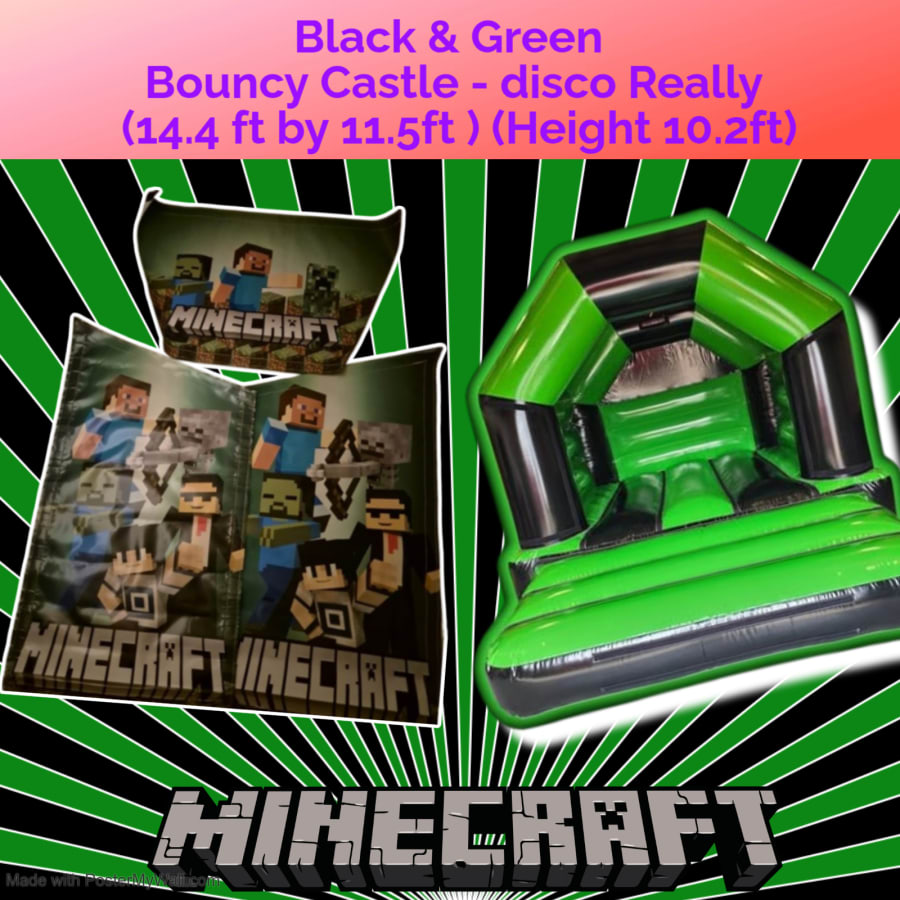 Reserve the Green & Black Castle (12ft by 14ft) - Minecraft Theme for your next event. Setup is quick and professional. Always use on a flat surface with adult supervision. Contact us today to check availability and pricing. 🎈